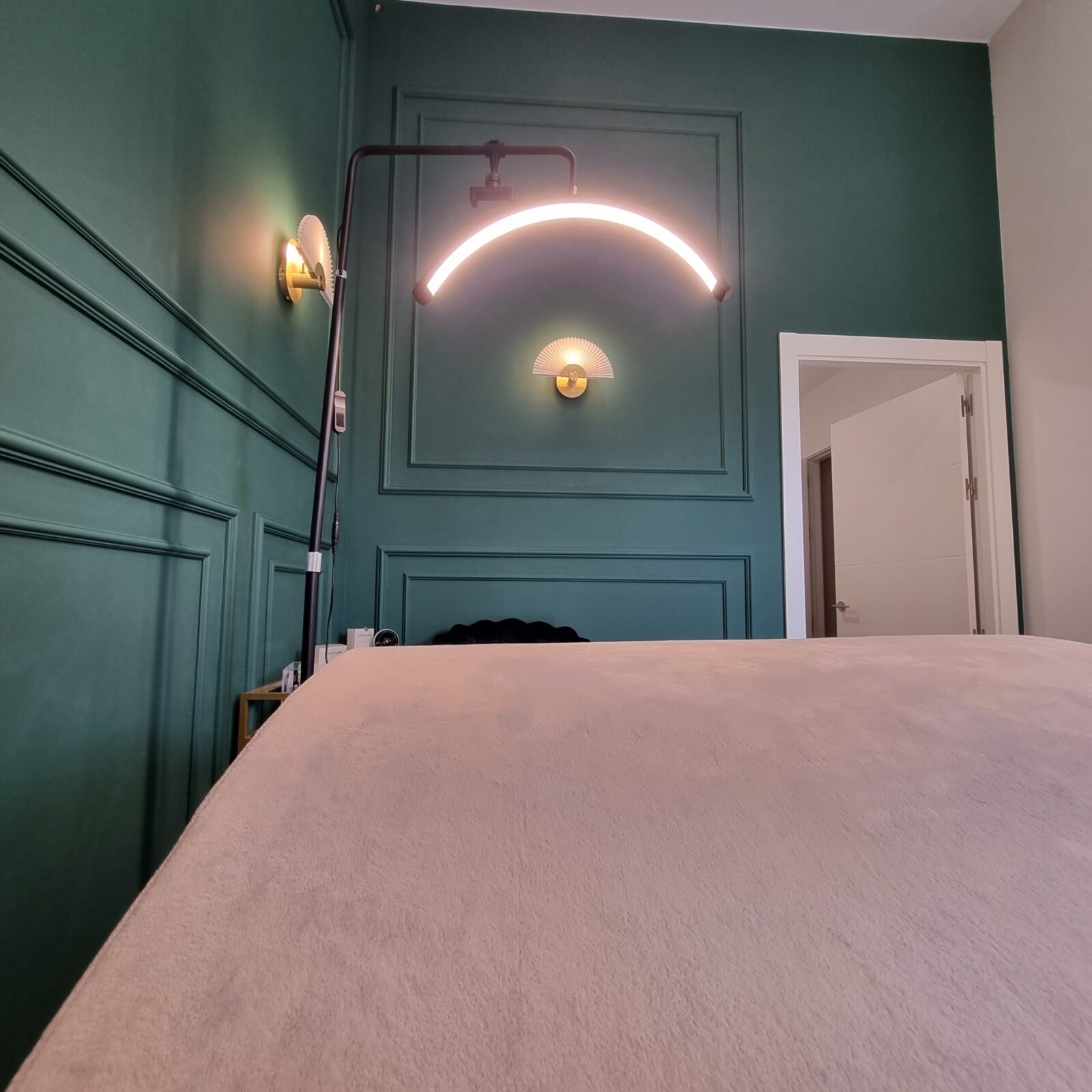 Buscamos crear un espacio elegante, relajado y muy femenino. El estilo que hemos tenido en mente durante la fase creativa fue el del Art Deco. Además, utilizamos colores neutro, junto con dos colores complementarios: el rosa pastel y el verde bosque. Todo ello unido por toques puntuales de dorado para acabar de perfilar el estilo que queríamos lograr.